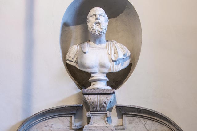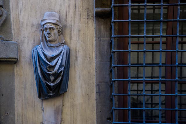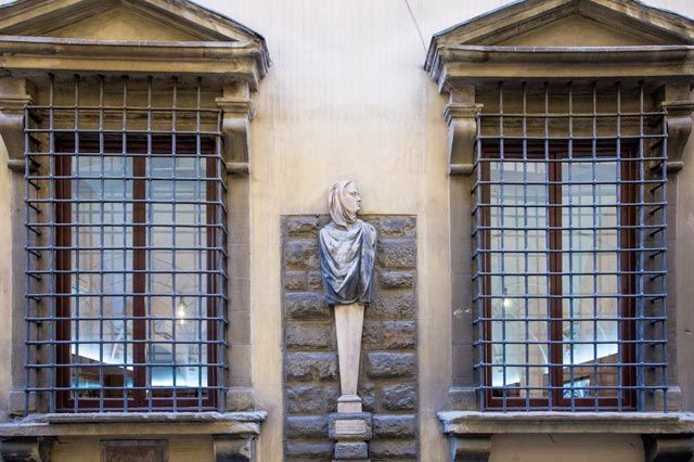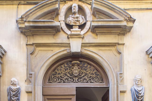 Palazzo Valori took the traditional denomination of palazzo "dei Visacci" from the severe expression of the illustrious faces depicting personalities of a cultural environment that used to be unknown to the community, later appreciated even in an artistically way.