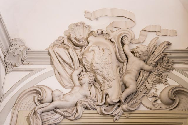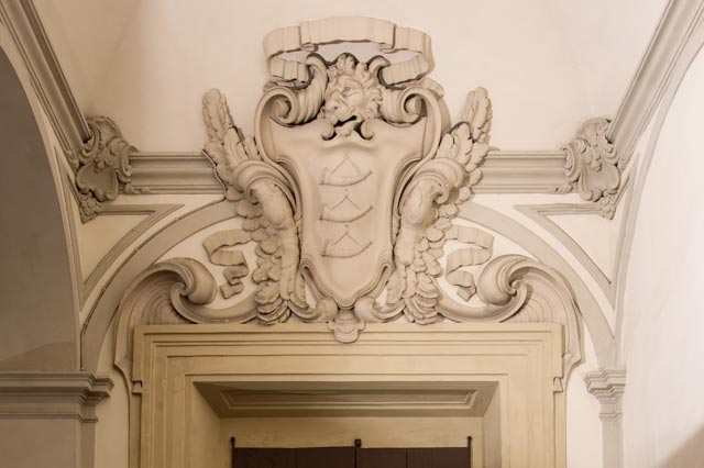 With the extinction of the florentine branch of the family, in 1687, the property was taken by the Guicciardini family, who, following a Antonio Maria Ferri project, started an important modernization work, which included the monumental staircase and the notable plaster decorations made by Giovanni Martino Portogalli that adorn the two gates, from which you can access to the first floor rooms.